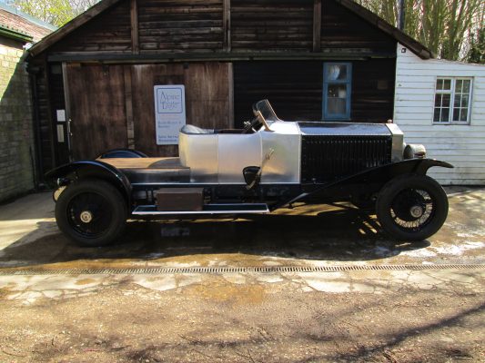 Originally named the “40/50 h.p.” the chassis was first made at Royce’s Manchester works. Chassis no. 60551, registered AX 201, was the car that was originally given the name “Silver Ghost.” Other 40/50 hp cars were also given names, but the Silver Ghost title was taken up by the press, and soon all 40/50s were called by the name. The Silver Ghost was the origin of Rolls-Royce’s claim of making the “best car in the world” – a phrase coined not by themselves, but by the prestigious publication Autocar in 1907. The chassis and engine were also used as the basis of a range of Rolls-Royce Armoured Cars.