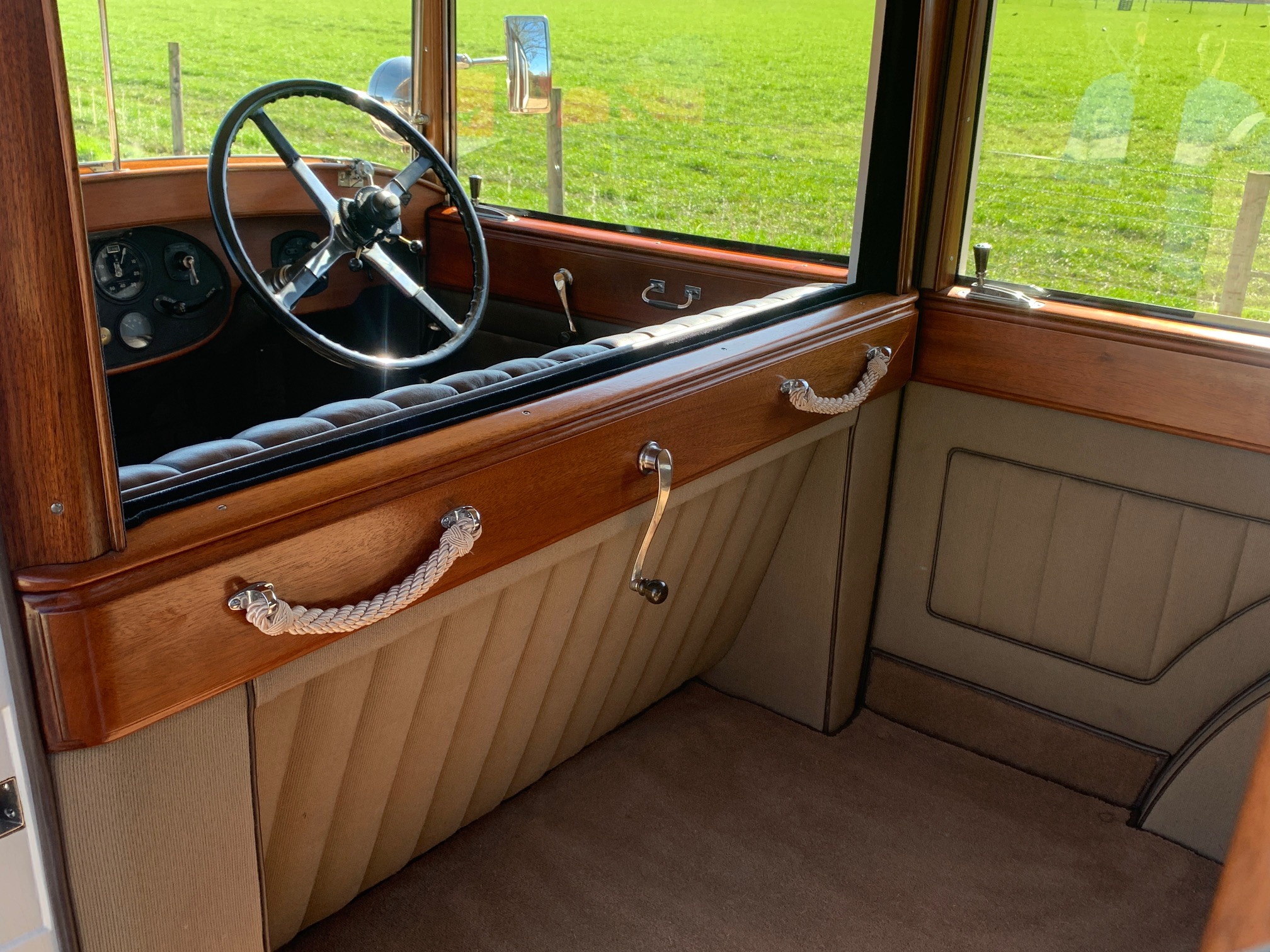 - Brown Connoly leather to Drivers compartment and biscuit Woolcloth to passenger compartment with brown Wilton carpet throughout.